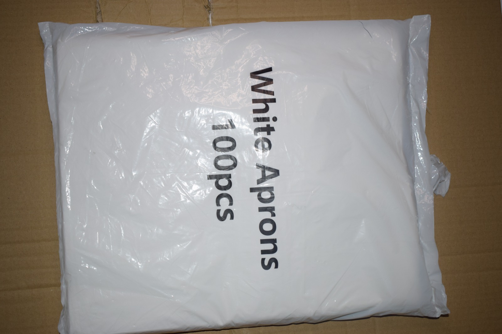 Intended for single use, these aprons are liquid-resistant, effectively preventing the transfer of fluids. They are ideal for industries such as catering, dentistry, cleaning, first aid, and medical care. For your convenience, the aprons are flat-packed in polybags, with 10 bags containing 100 aprons each.